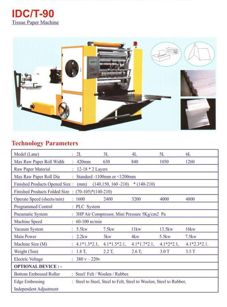 Vacuum Mani Type Face Tissue Machine IDC/T-30