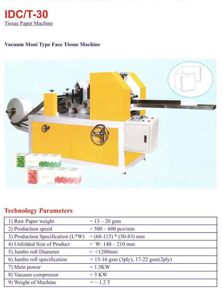 Vacuum Mani Type Face Tissue Machine IDC/T-30